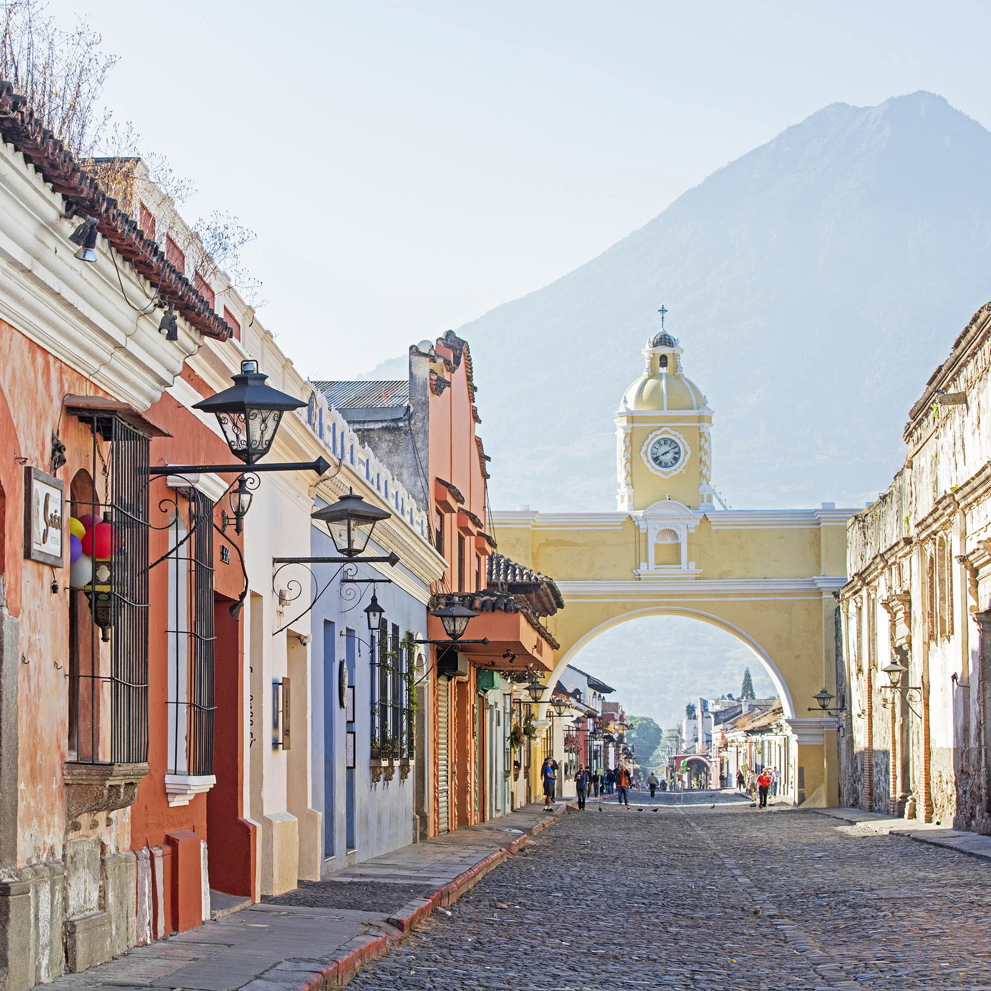 Het werelddeel van de actieve vulkanen, een traditionele inheemse bevolking in kleurrijke kleding, tussen twee oceanen.